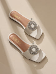 GNIST Embellished Chic Vegan Leather White Party Flats
