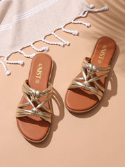 GNIST Comfy Strappy Slip on RoseGold Flats