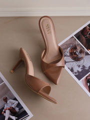 GNIST Open Toe Twisted Strap Brown Stilettos Heel