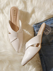 GNIST Pointed Mule With Bow White Stiletto Heel