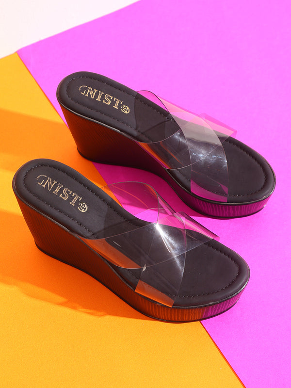 Product Name : Gnist Black Cross Strap High Heels Transparent Platforms Heels