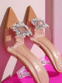 Product Name :GNIST Pointed Embellished Transparent Beige Heels