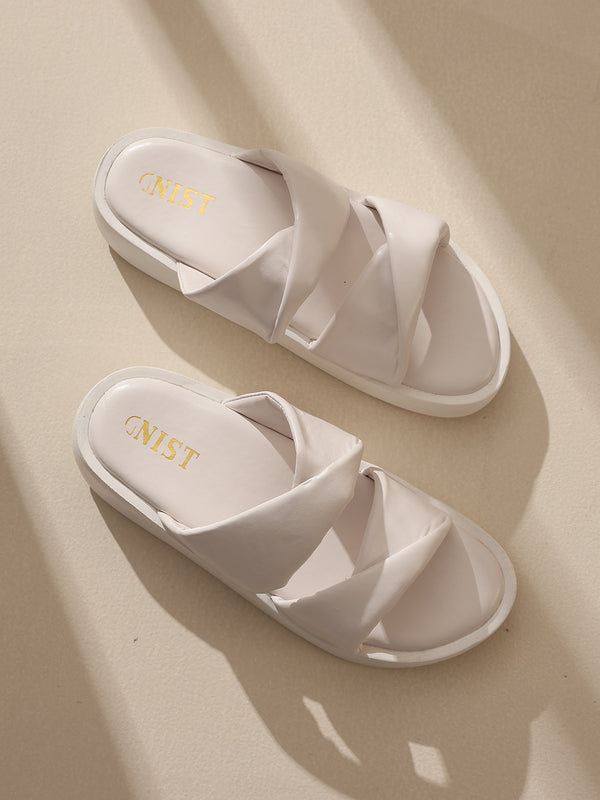 Product Name : GNIST Cushioned Twisted Strap Flatform White Platform heels