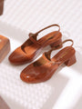 Product Name : GNIST Structured Round Toe Tan Block Heel